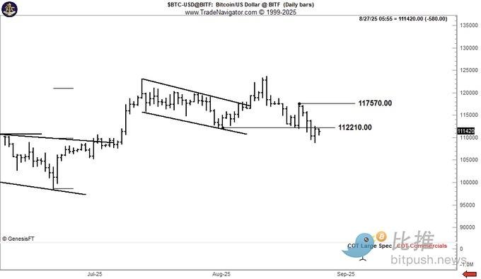 资深交易员 Peter Brandt 认为,尽管比特币近期出现反弹,但要彻底摆脱中期的看跌情绪,价格必须突破 117,570 美元的关键阻力位。